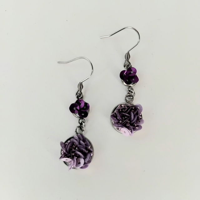 Les perles et les paillettes de Lunéville sont soigneusement brodées sur une cotonnade puis appliquées sur le support en Acier inoxydable. Les reflets lumineux varient avec le mouvement du visage pour plus de brillance !