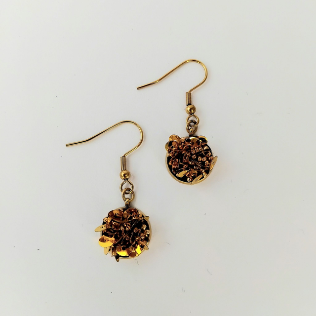 Les perles et les paillettes de Lunéville sont soigneusement brodées sur une cotonnade puis appliquées sur le support en Acier inoxydable. Les reflets lumineux varient avec le mouvement du visage pour plus de brillance !